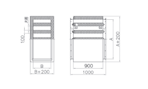 消聲腔内壁填塞離(lí)心玻璃棉或礦棉,外覆玻璃布及φ4mm孔徑多孔闆,導風(fēng)片厚度100mm。